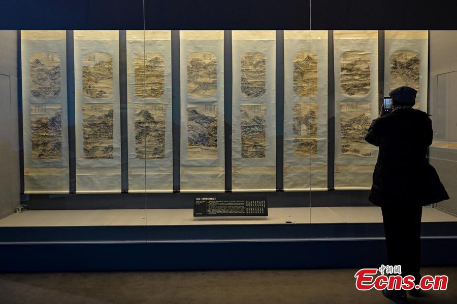 A visitor takes a photo at the exhibition of "A Story of GardenⅡ-- 270 Years of the Summer Palace", hosted by the Museum of Chinese Garden and Landscape Architecture, Dec. 2, 2020.
