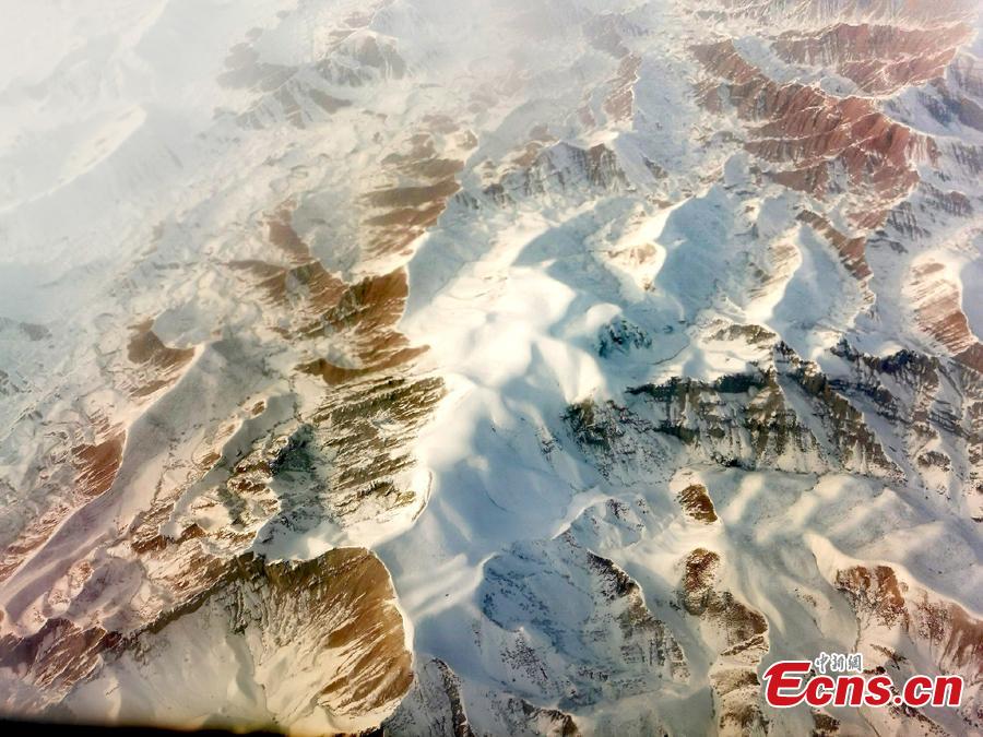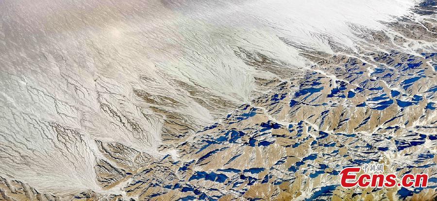 This aerial photo taken on Dec. 6, 2002 shows the breath-taking view of Tianshan Mountains after a snowfall hits the area. (Photo/VCG)