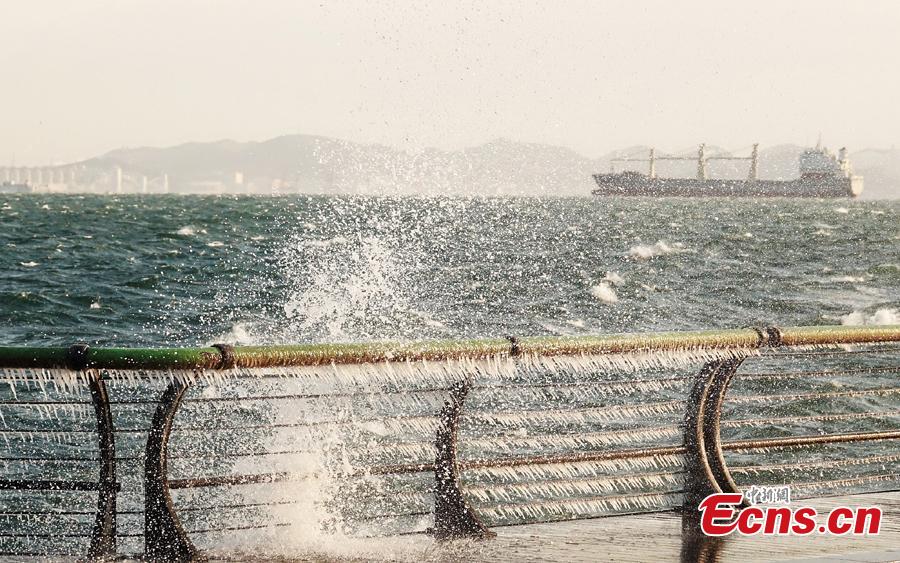Photo taken on Dec. 13, 2020 shows icicles hang on a roadside seat in Dalian, Liaoning Province. A cold front hit Dalian, causing sharp temerature drop and snowfall to the city. (Photo/VCG)