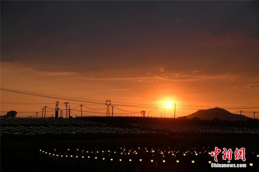 Photo taken on Dec. 17, 2020 shows the light supplementing system in operation at a dragon fruit planting base in South China's Hainan Province. The light supplementing system has been introduced to the dragon fruit planting bases to enhance photosynthesis and prolong the fruiting period of dragon fruits. (Photo/China News Service)