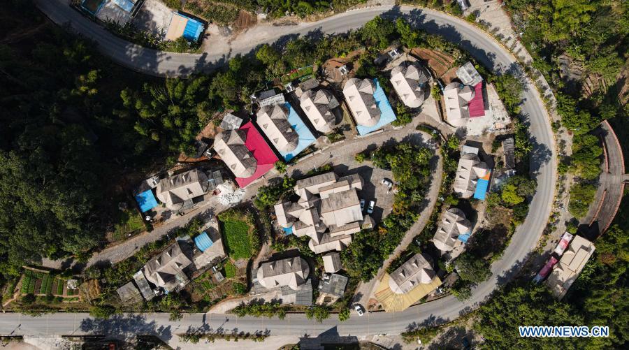 Aerial photo taken on Dec. 20, 2020 shows a view of Yangluo Village of Wa Autonomous County of Ximeng, southwest China's Yunnan Province.