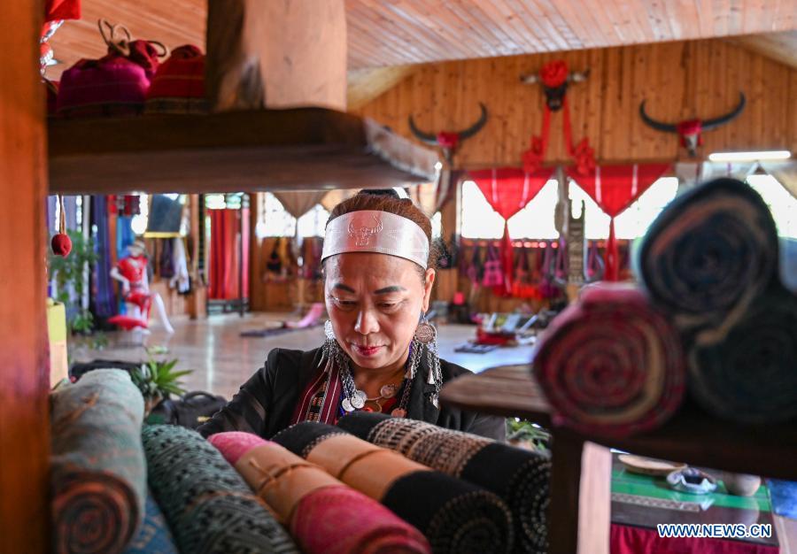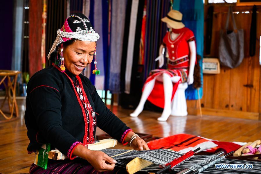 Cultural companies including Ximeng Impression in Yangluo Village are also participating in the efforts. They provide the locals with opportunities of learning weaving techniques and selling products of a great variety of hand-woven clothing. (Xinhua/Wang Guansen)