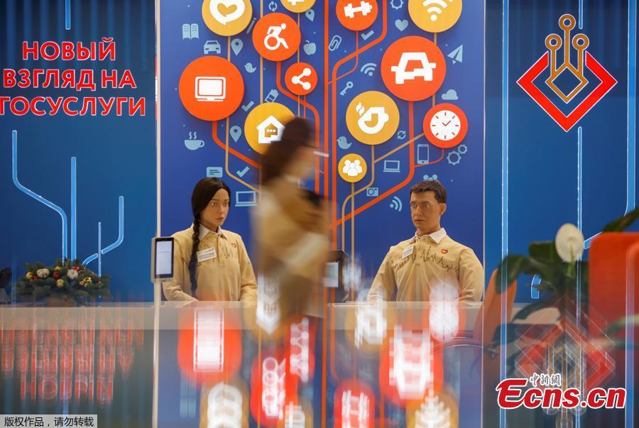 Dasha and Alex, human-like robots designed by Promobot company, are seen ready to serve visitors in the public services center in Moscow, Russia December 21, 2020. (Photo/Agencies)
