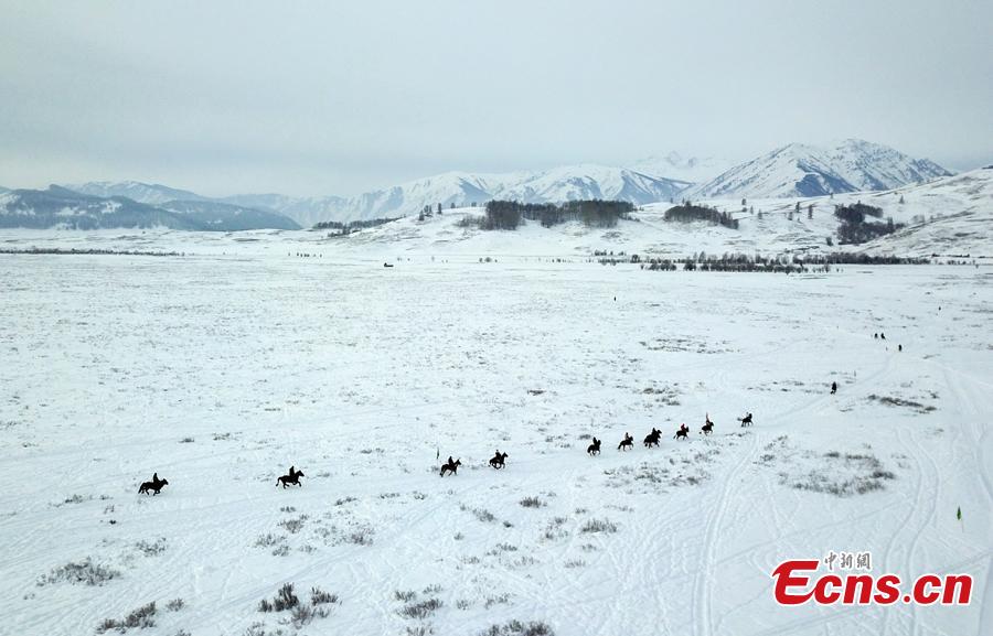 Local herdsmen perform horse racing during a snow carnival held in Hemu Township of Kanas, northwest China's Xinjiang Uygur Autonomous Region, Dec. 22, 2020. Herdsmen performed various traditional customs at the carnival Tuesday. (Photo: China News Service/Liu Xin)