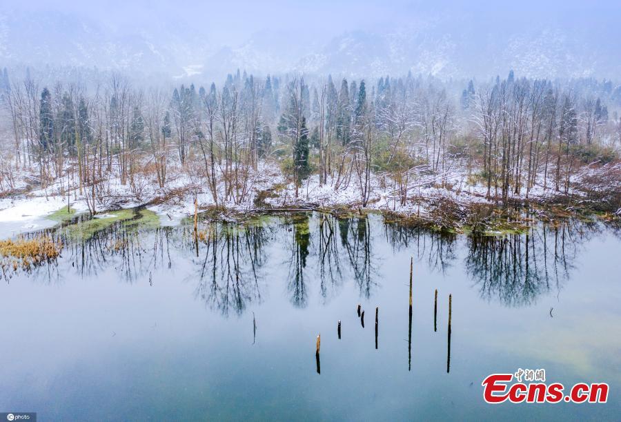 Snow turns Longchi National Forest Park in Dujiangyan of Southwest China's Sichuan Province into a winter wonderland on January 4, 2021. Snow and clouds, together with forests and peaks in the park make it as beautiful as a painting. (Photo/IC)