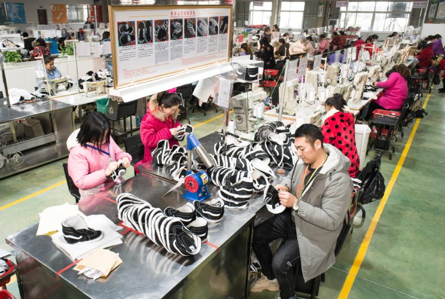 Xu Baoan, right, a former fisherman, now works at a shoe factory in Honghu, Hubei. (Photo/Xinhua)