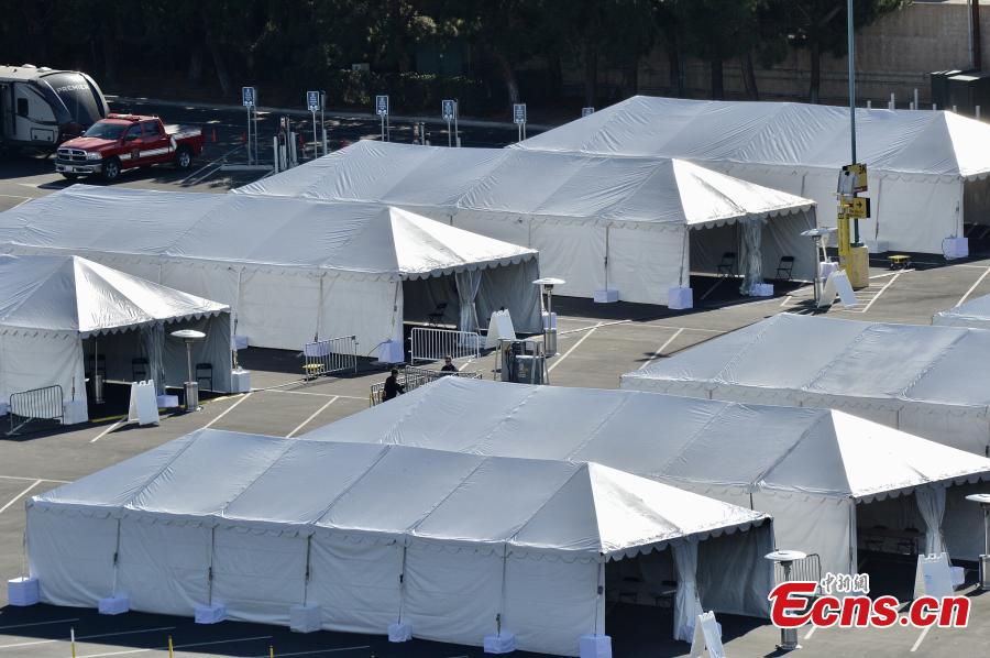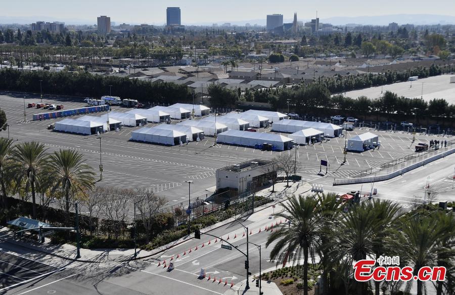 COVID-19 vaccination tents are set up in the north of the Toy Story parking lot at the Disneyland Resort in Anaheim, California, U.S., Jan. 12, 2021. The parking lot is located of Katella Avenue and sits southeast Disneyland. (Photo:VCG)