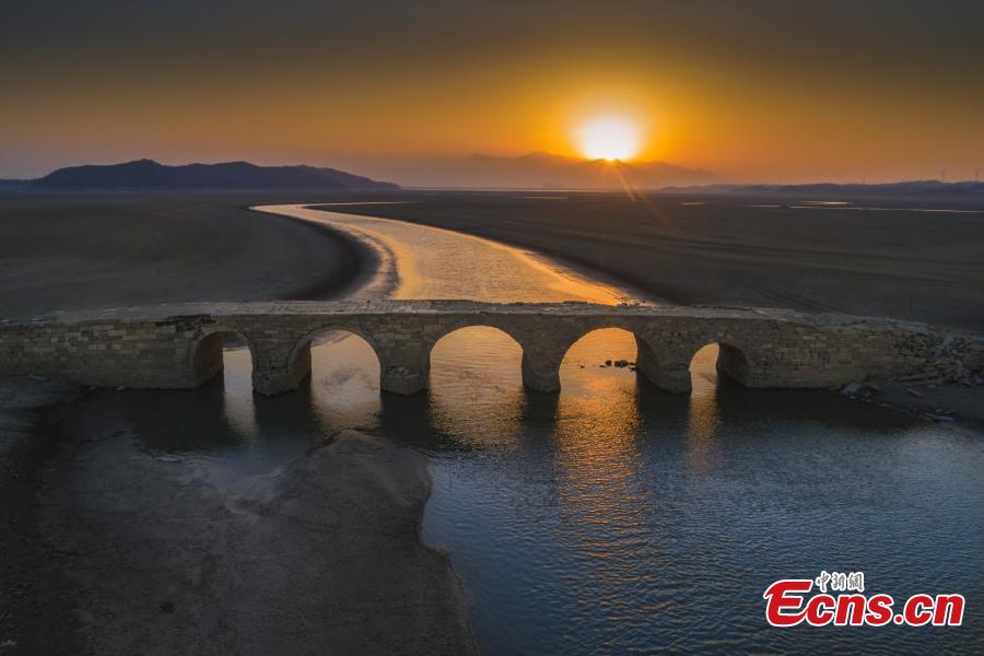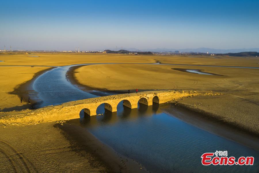 Poyang Lake, China's largest freshwater lake, has entered a dry season since the beginning of winter. Built in the Ming Dynasty (1368-1644), the stone arch bridge is submerged in the water during the wet season and emerges out during the dry season.