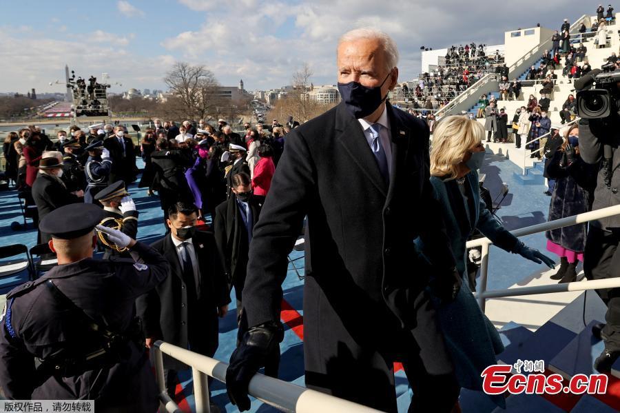 U.S. President Joe Biden leaves with wife Jill after his inauguration as the 46th president, on the West Front of the U.S. Capitol in Washington, U.S., Jan. 20, 2021. (Photo/Agencies)