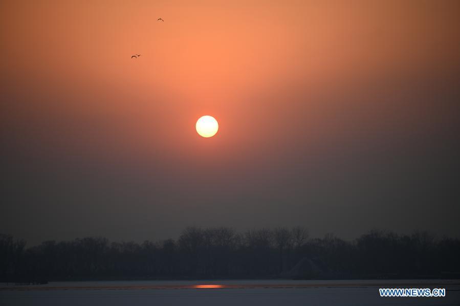 Photo taken on Jan. 21, 2021 shows a view of sunset at the Summer Palace in Beijing, capital of China. (Photo by Hu Zhixuan/Xinhua)