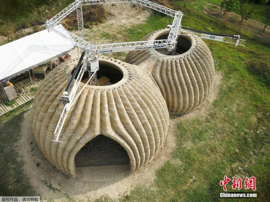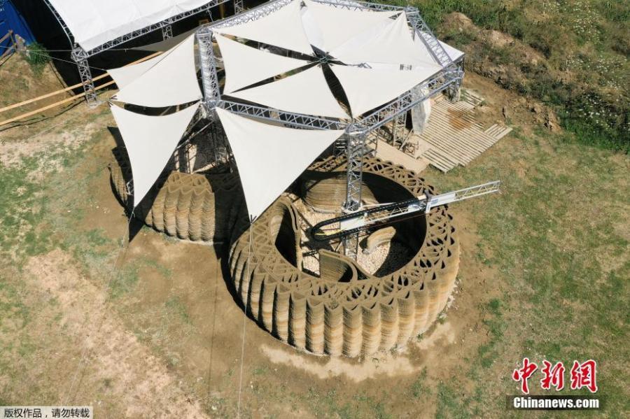 An eco-friendly 3D-printed house known as TECLA, made entirely of sustainable recyclable materials sourced from local soil by Italian 3D print manufacturers WASP, is seen in Ravenna, Italy. (Photo/Agencies)