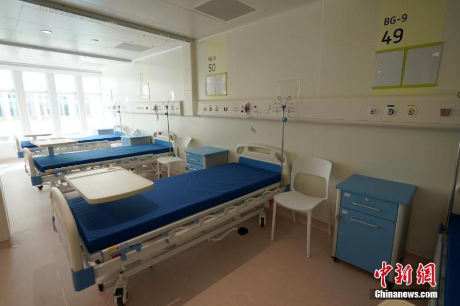 Photo taken on Feb.2, 2021 shows the ward of the North Lantau Hospital Hong Kong Infection Control Center in south China's Hong Kong. The temporary hospital funded by the central government for treating COVID-19 patients in the Hong Kong Special Administrative Region (HKSAR) will open its doors on February 26. The North Lantau Hospital Hong Kong Infection Control Center, built next to another treatment facility at AsiaWorld-Expo, is capable of providing 136 wards and 816 negative pressure beds. (Photo/China News Service)