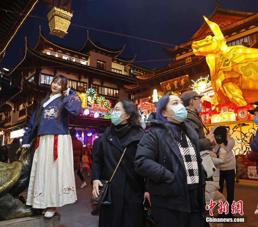 Tourists enjoy lanterns and decorations to celebrate the Chinese New Year or Spring Festival at Yuyuan Garden in Shanghai, Feb. 9, 2021. (Photo/China News Service)