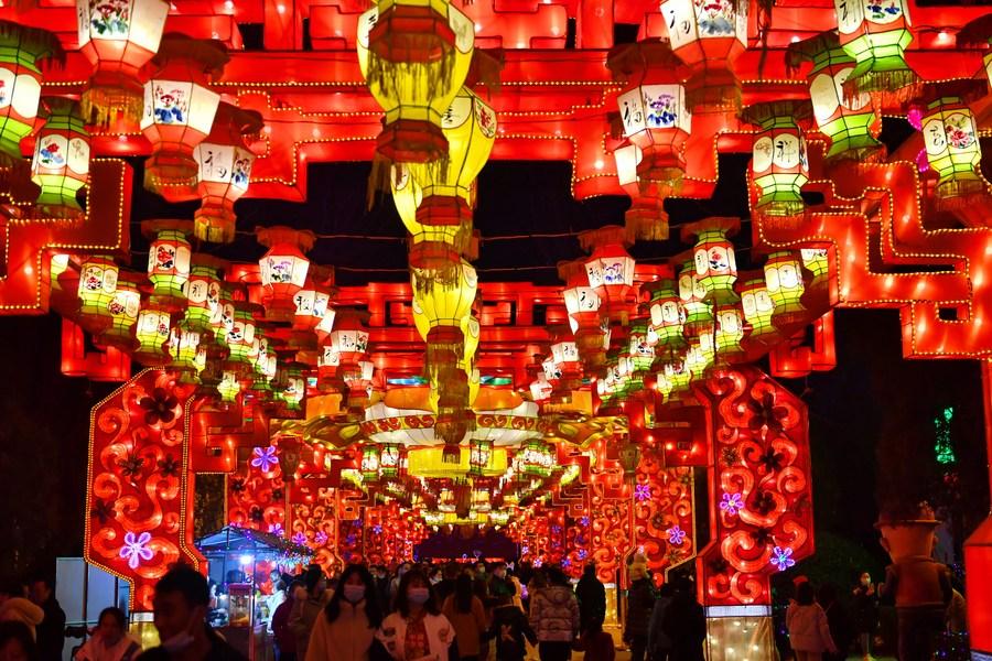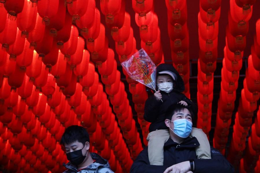 People visit the Old North Market during the Lunar New Year holiday in Shenyang, northeast China's Liaoning Province, Feb. 14, 2021. (Xinhua/Yang Qing)