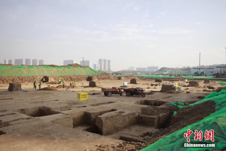 Photo shows an archaeological excavation site near the third phase expansion of Xi'an Xianyang International Airport in Xi'an, northwest China's Shaanxi Province, Feb.18, 2021. (Photo/China News Service)
