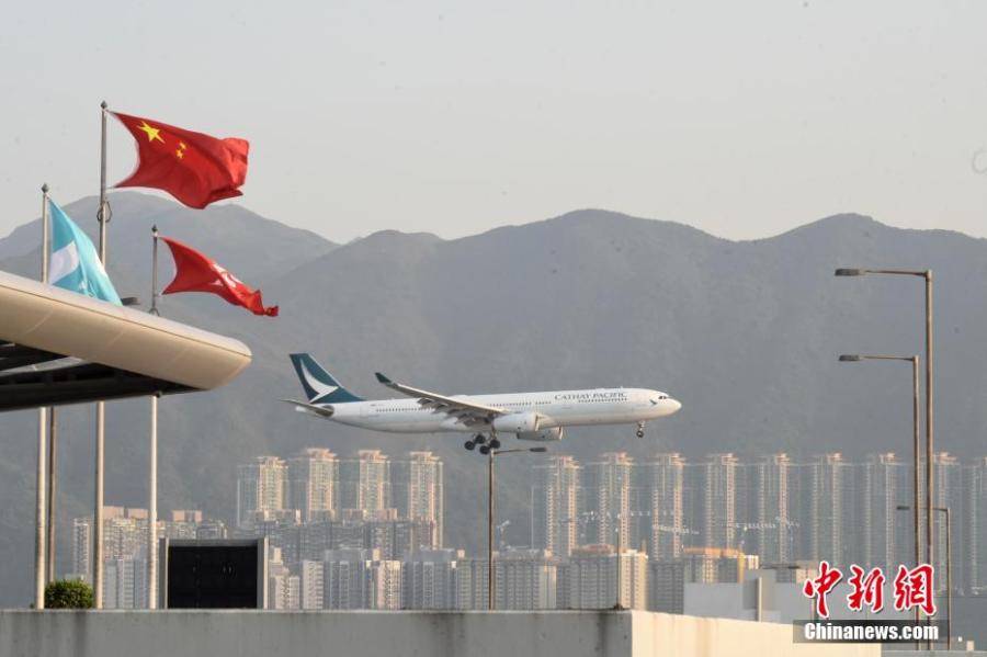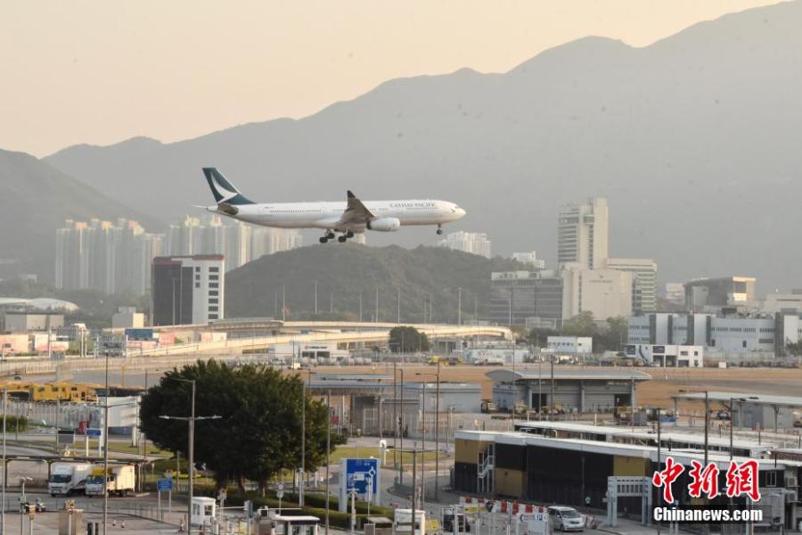 Photo shows Cathay Pacific flight carrying 1 million doses of SINOVAC vaccine touching down at the Hong Kong International Airport in Hong Kong, south China, Feb. 19, 2021. (Photo/China News Service)