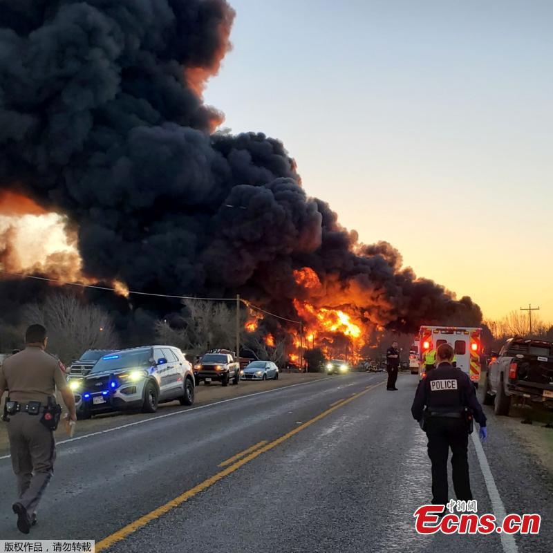 A train carrying fuel collides with a large towed truck, causing a violent explosion near Cameron, Texas, USA, Feb. 23, 2021. (Photo/Agencies)