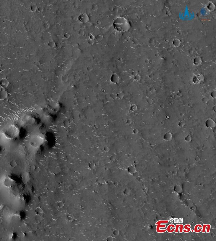The pictures - two black-and-white and one color - were shot recently by China's Tianwen 1 robotic probe when the spacecraft was travelling in Mars orbit, according to the administration.