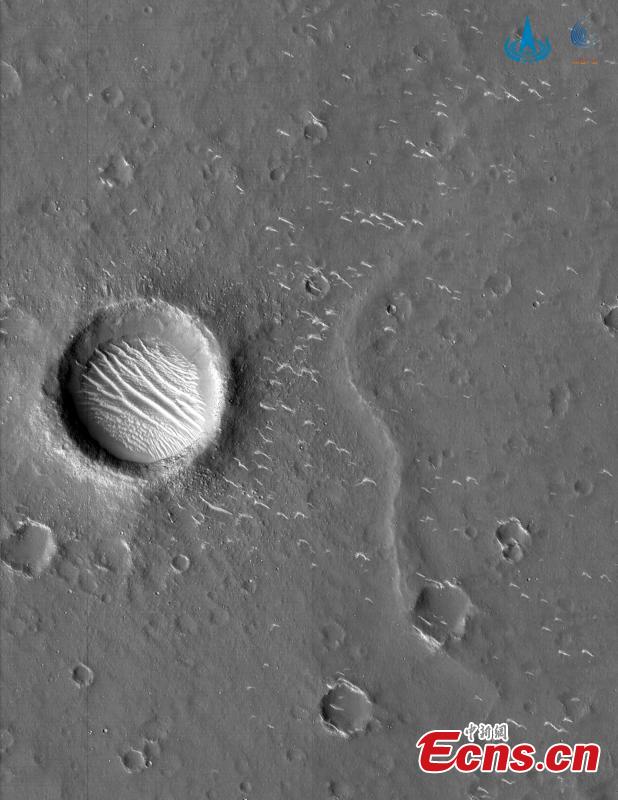 The color image is of the red planet's North Pole region taken by the medium-resolution camera.(Photo provided by CNSA)