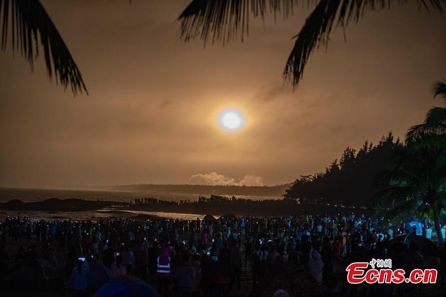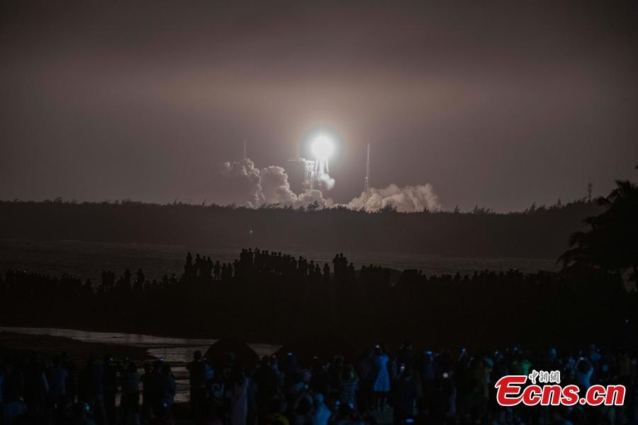 A long march-7A Y2 carrier rocket blasts off from the Wenchang Spacecraft Launch Site, south China's Hainan Province, March 12, 2021. (Photo/China News Service)