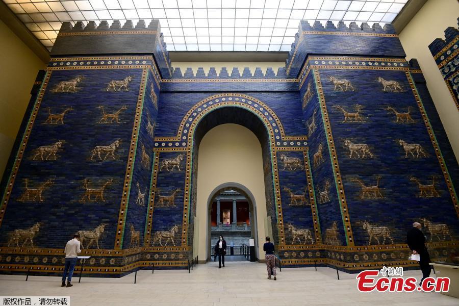 Visitors stand in front of the Ishtar Gate (reconstruction of the outer gate) at the Pergamon Museum, Berlin, Germany, March 16, 2021. Visits at some state museums were possible again amid the COVID-19 pandemic. (Photo/Agencies)