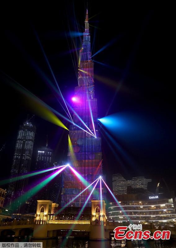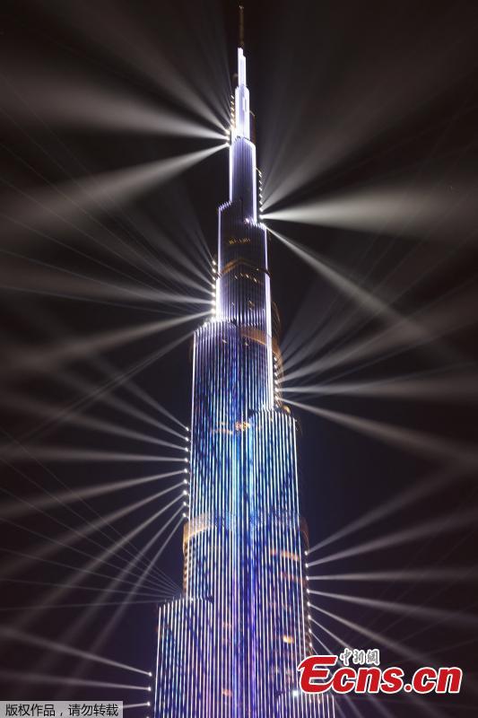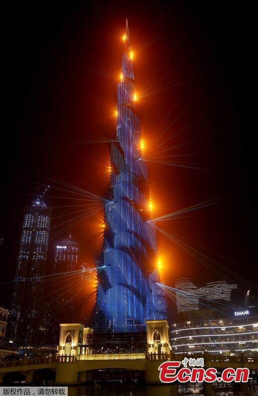 Photo taken on March 17, 2021 shows a view of Burj Khalifa, the world's tallest tower, during a light show in Dubai. (Photo/Agencies)
