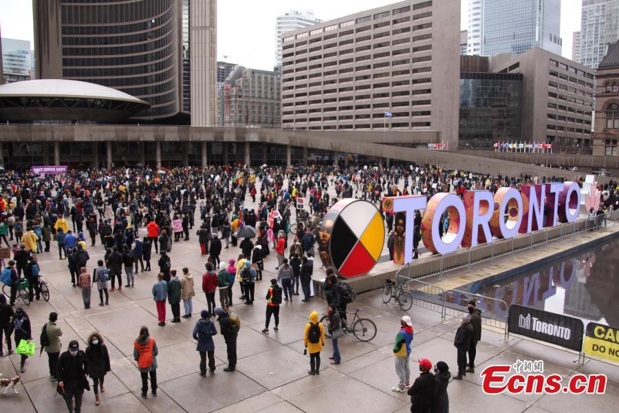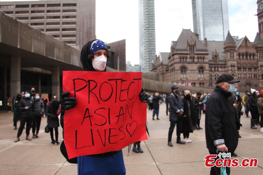 Thousands of people from different ethnic communities attend the rally to call for an end to Asian hatred in front of City Hall in Toronto, Canada, March 28, 2021. On the same day, the "Stop Asian Hate" rallies were held in Toronto, Vancouver, Calgary, Ottawa and other Canadian cities. (Photo: China News Service/Yu Ruidong)
