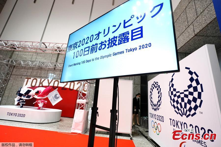 The statues of Miraitowa and Someity, the official mascots for the Tokyo 2020 Olympics and Paralympics, are seen at an unveiling event marking 100 days before the start of the Olympic Games, at the Tokyo Metropolitan Government building, in Tokyo, Japan, April 14, 2021. (Photo/Agencies)