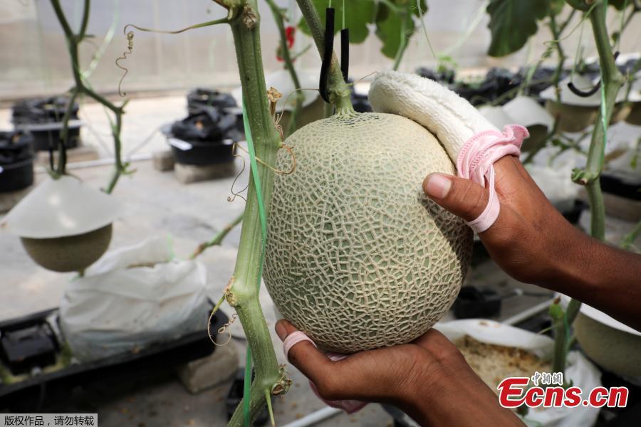 A farmer checks a Japanese muskmelon at Mono Farm in Putrajaya, Malaysia April 8, 2021. (Photo Agencies)