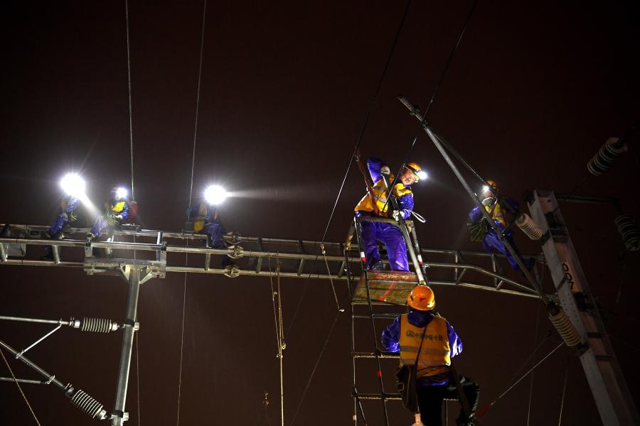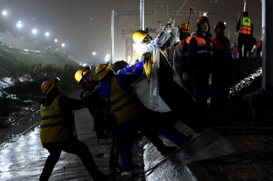 Some 1,000 Chinese workers on Monday night managed to upgrade the high-speed railway by installing a new railway junction in less than seven hours. The construction, which is a key project of a mega water diversion project taking water from the Yangtze River to the Huaihe River, connects a newly-built line with the existing railway line.