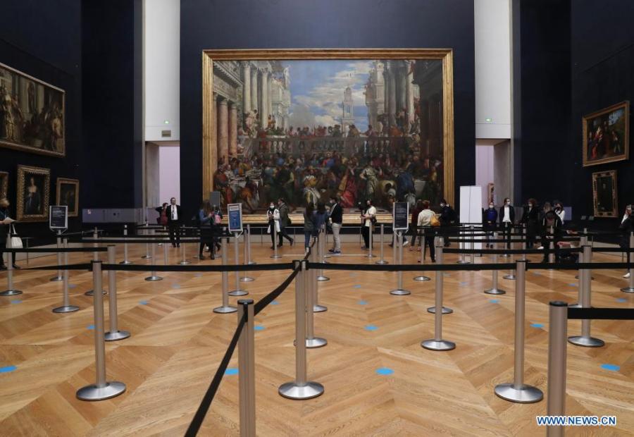 People visit the Louvre Museum on its reopening day in Paris, France, on May 19, 2021. Louvre Museum reopened on Wednesday as the nationwide lockdown eased. (Xinhua/Gao Jing)