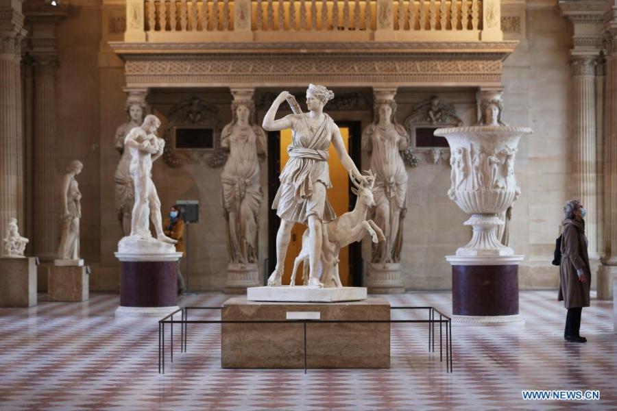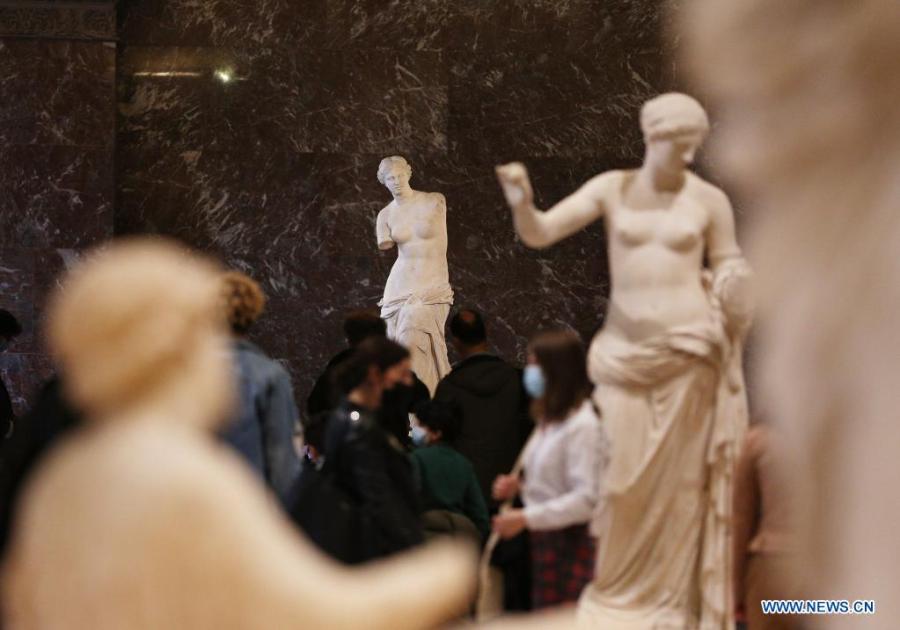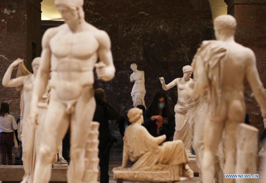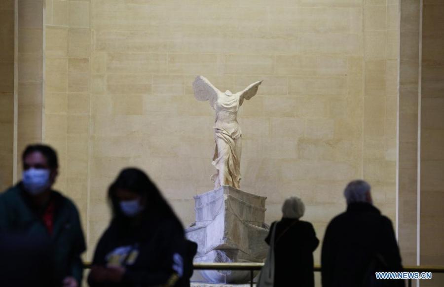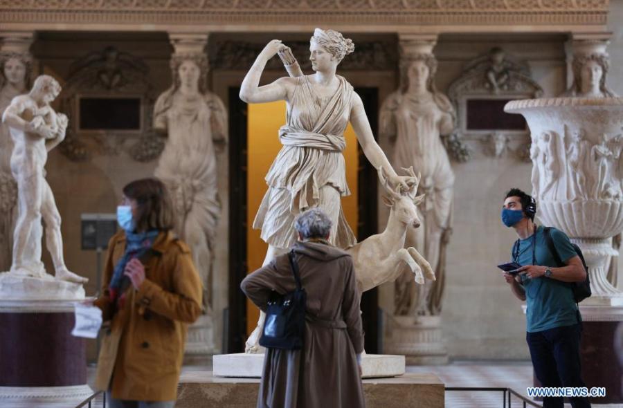 Photo taken on May 19, 2021 shows exhibits at the Louvre Museum in Paris, France. Louvre Museum reopened on Wednesday as the nationwide lockdown eased. (Xinhua/Gao Jing)