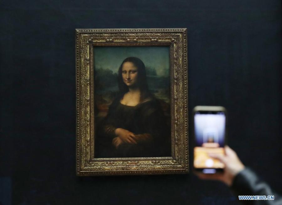 A visitor takes a photo of the painting Mona Lisa at the Louvre Museum on its reopening day in Paris, France, on May 19, 2021. Louvre Museum reopened on Wednesday as the nationwide lockdown eased. (Xinhua/Gao Jing)
