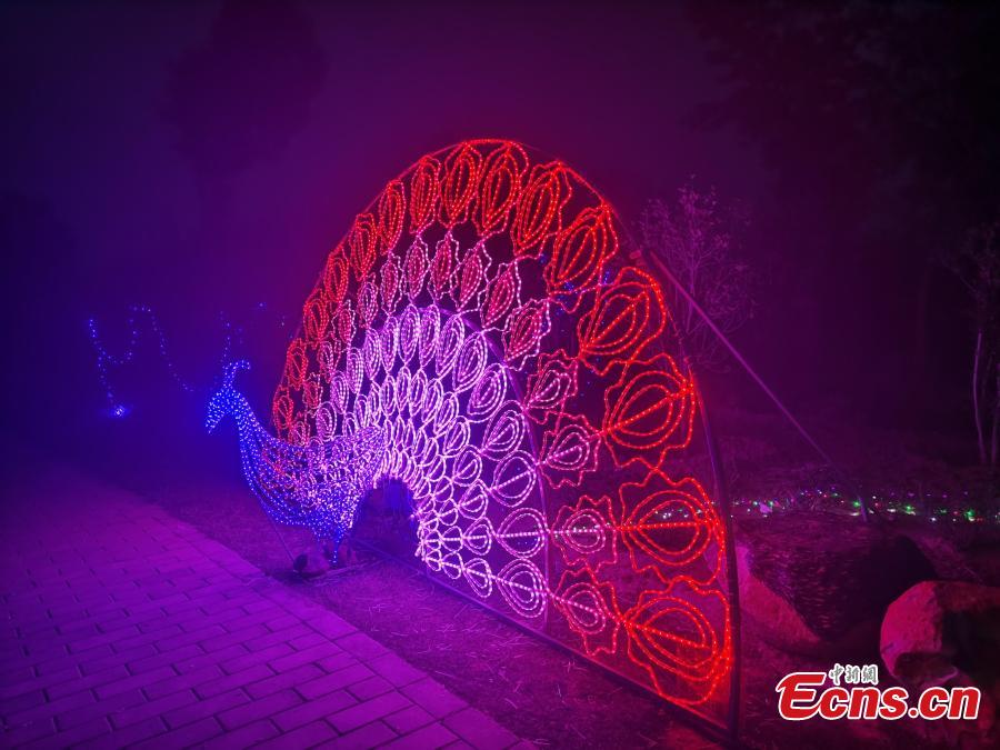 The undated photo shows the beautiful night views featuring dazzling light shows at a modern agricultural industrial park in Matouling, central China's Henan Province. Developed from a barren land to a wonderland, the park has become a large modern agricultural sightseeing demonstration park which integrates fruit tree planting, products processing, sightseeing, and natural-based education. It has become a must-see tourist attraction in the province.(Photo: China News Service/Wang Dengfeng)