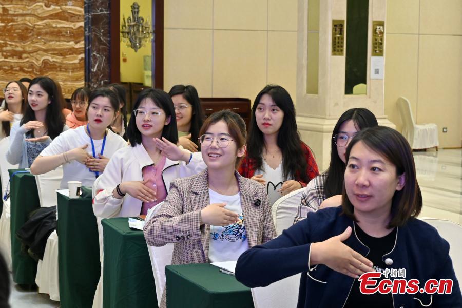 Volunteers receive sign language training for Beijing 2022 Olympic and Paralympic Winter Games in north China’s Hebei Province, May 26, 2021.