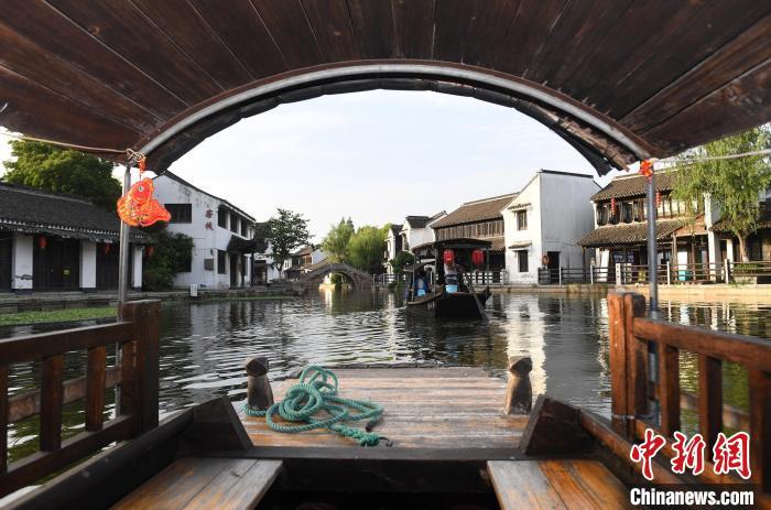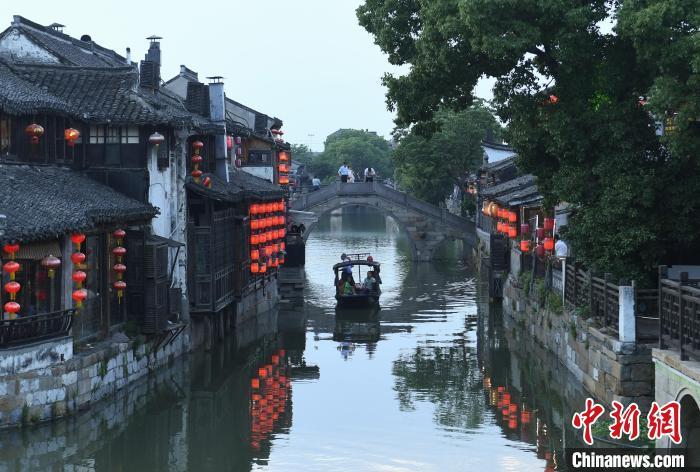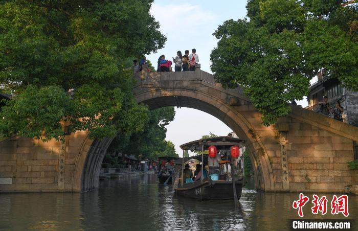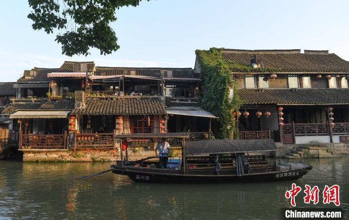 This photo released on May 26, 2021 shows the scenery of the Xitang Ancient Town in Jiashan County, Jiaxing City, east China's Zhejiang Province. (China News Service/Wang Gang)