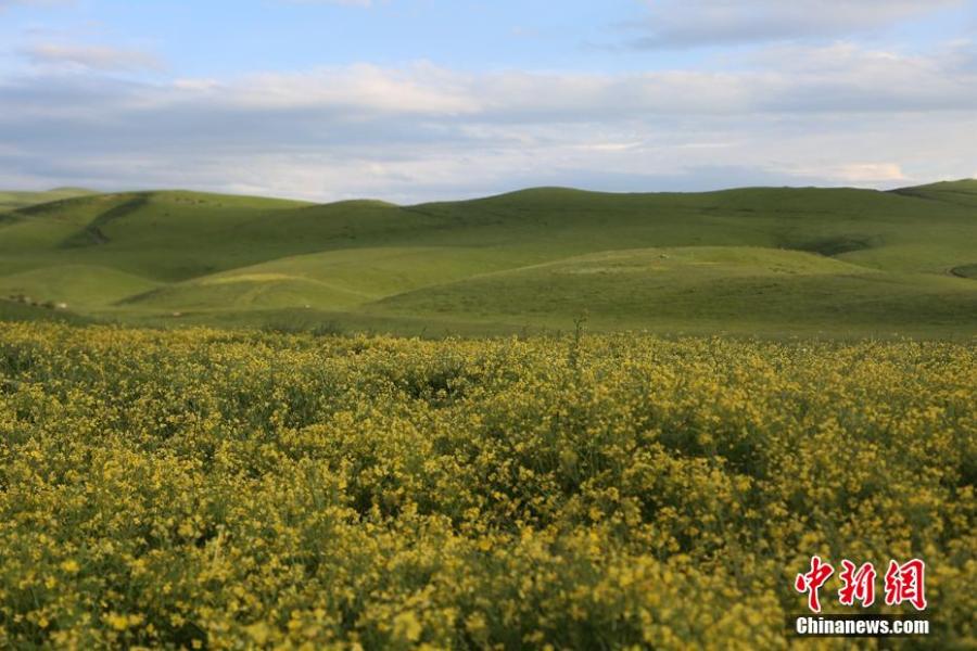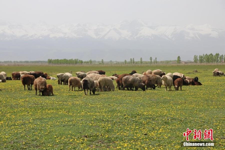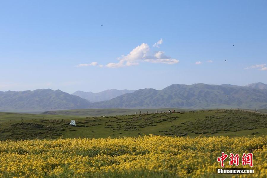 A variety of wild flowers such as baby's breath and dandelion compete to bloom on the Zhaosu prairie in Xinjiang Uygur Autonomous Region in early summer. This sea of flowers has attracted lots of tourists from across China. (Photo: China News Service/Li Wenwu)