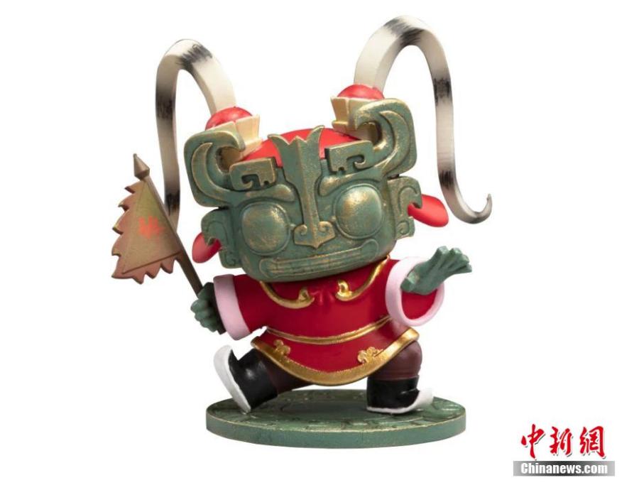 Photo shows the new mystery boxes launched by the Sanxingdui Museum on June 1. These mystery box characters, with Sanxingdui cultural relics as the prototype, have been personified and combined with unique Sichuan culture such as face-changing opera, Sichuan cards, embroidery, etc, making Sanxingdui cultural relics vibrant in modern times. (Photo provided to China News Service by Sanxingdui Museum)