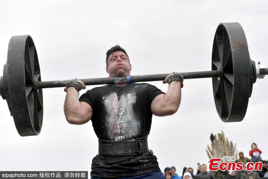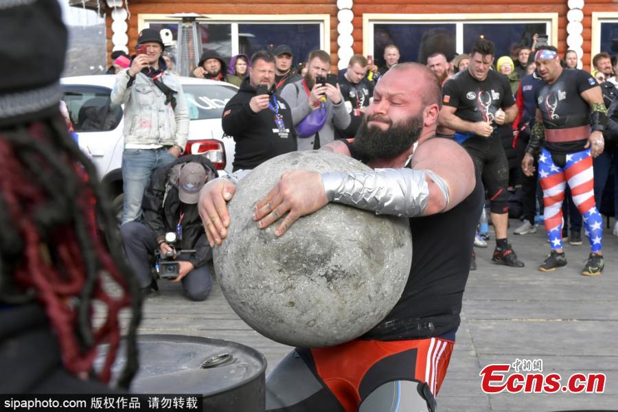 A competitor lifts a barbell during the Power Extreme World Cup in Teriberka, Murmansk, Russia, June 5, 2021. (Photo/Agencies)