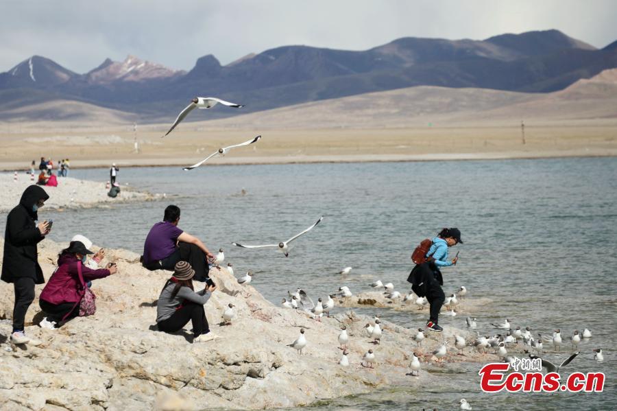 Black-headed gulls have fun in the Namtso Lake in Tibet, June 2, 2021. (Photo: China News Service/Chen Xiaoyuan)
