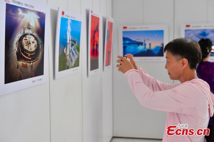 People take pictures at a photo exhibition, which celebrates the 100th anniversary of the founding of the Communist Party of China (CPC) in Beijing, June 20, 2021. The photo exhibition, jointly held by the Chinese Folklore Photography Association and the Association of Chinese Local Art to celebrate the 100th anniversary of the founding of the CPC, displayed more than 100 works. (Photo: China News Service / Tian Yuhao)