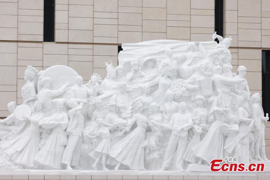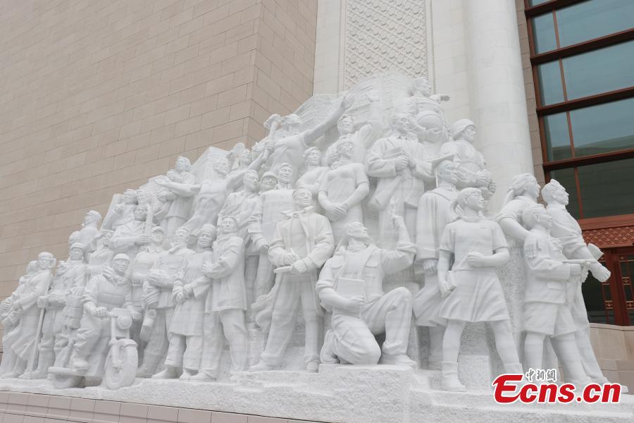 Five major sculptures, whose 276 characters were carved out of 583 pieces of white marble, namely "Flag", "Faith", "Great Cause" "Surmounting Difficulties" and "Chasing Dreams", depict the story of the Communist Party of China's 100-year struggle for the well-being of the people and rejuvenation of the nation.