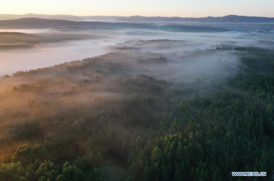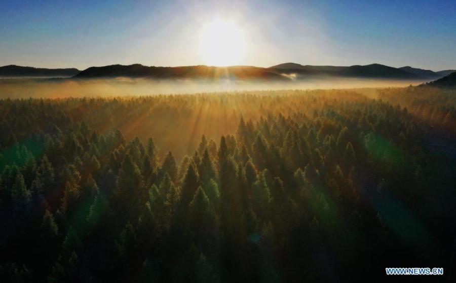 Aerial photo taken on June 27, 2021 shows the scenery in Saihanba National Forest Park in Chengde, north China's Hebei Province. (Xinhua/Yang Shiyao)