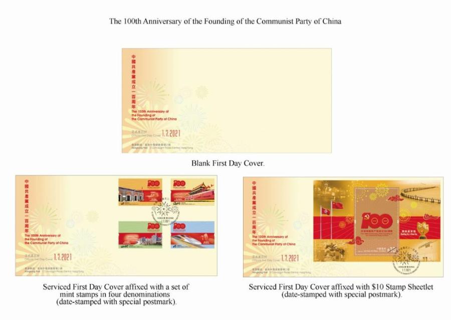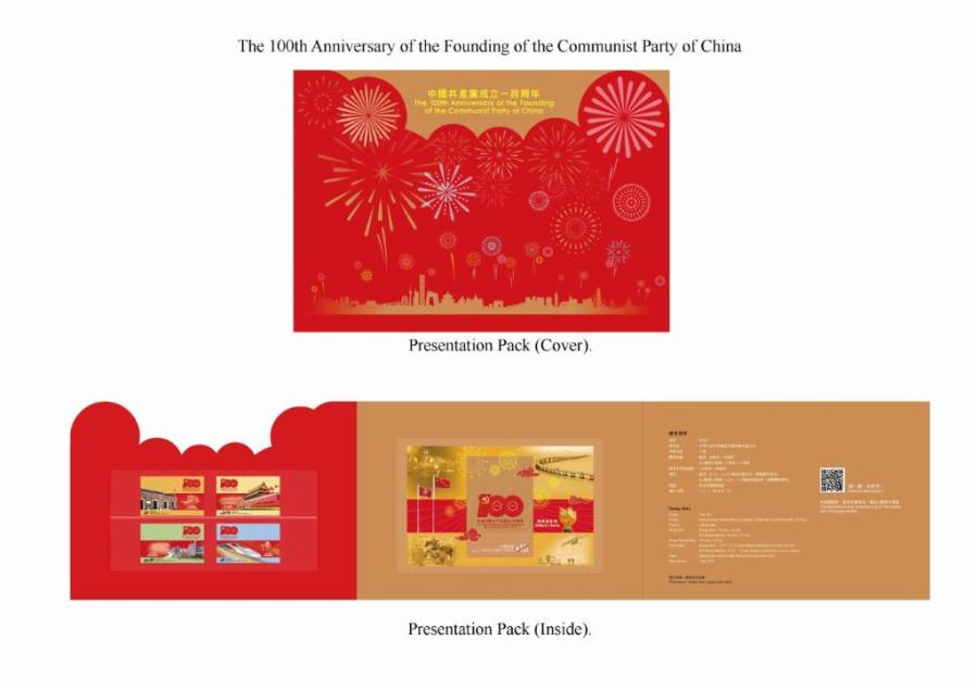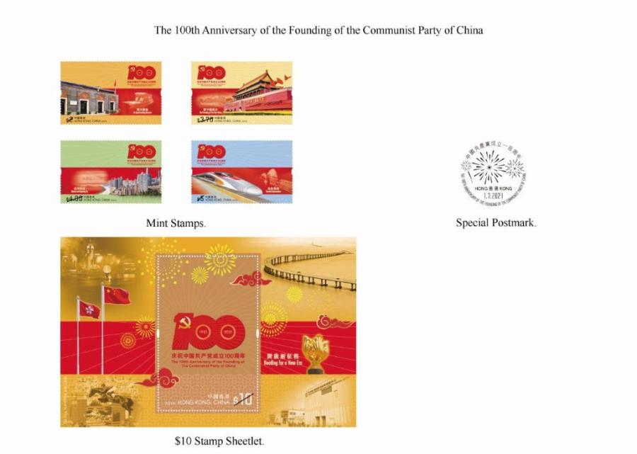 Hong Kong Post announces on June 28, 2021 the release of a commemorative stamp issue and associated philatelic products on the theme of "the 100th Anniversary of the Founding of the Communist Party of China (CPC)" on July 1. (Xinhua)