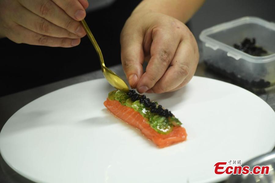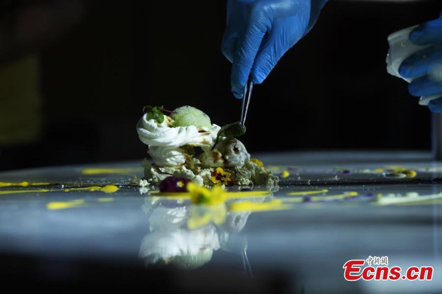Chefs work on molecular gastronomy at Chongqing Yuelai International Conference Center on June 29, 2021. A cuisine cooking competition attracted chef teams from five different star hotels in Chongqing municipality. (Photo/ Chen Chao)