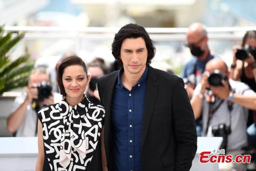 Cast members including Adam Driver and Marion Cotillard of the French film "Annette" walk on the red carpet at the 74th Cannes International Film Festival in Cannes, on July 6, 2021. "Annette" led the opening of the 74th Cannes International Film Festival, which will be held from July 6 to 17 this year. (Photo/ China News Service: Li Yang)