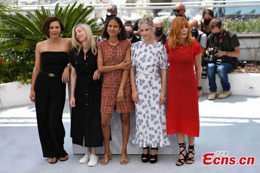 Female jury members including Melanie Laurent (R2) and Maggie Gyllenhaal (L1) pose during the 74th Cannes International Film Festival in Cannes on July 6, 2021. (Photo/ China News Service: Li Yang)