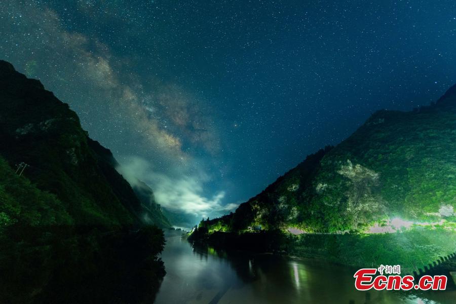 Sea of clouds, twinkling stars, and flying fireflies turn Guoduwan town in Hubei Province into a fairytale world, July 8, 2021. (Photo by China News Service/ Chen Quanlin)