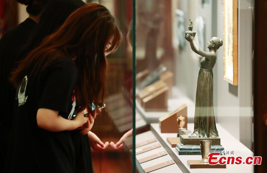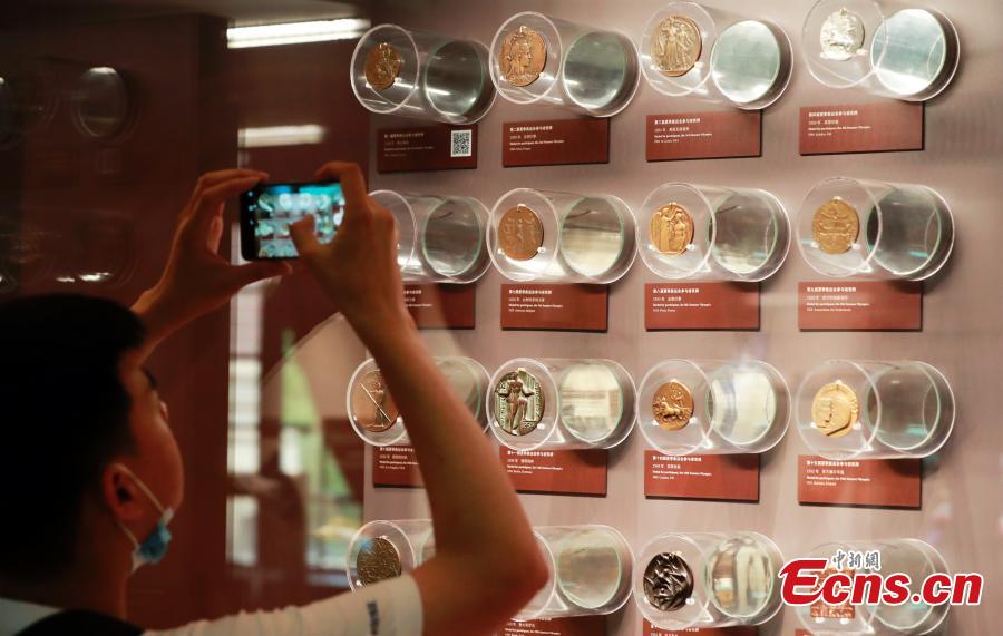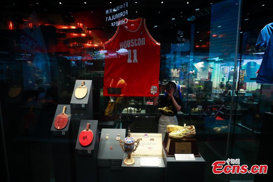 A visitor takes photos of the exhibits at Shanghai Sports Museum on July 11, 2021. (Photo/Tang Yanjun)