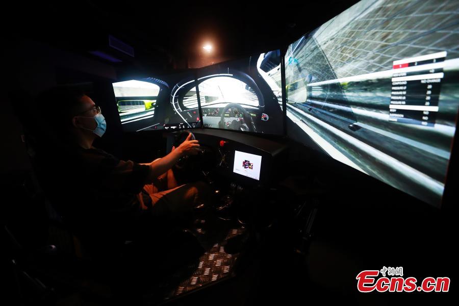 A visitor experiences the fun created by high technology in the experience area at Shanghai Sports Museum on July 11, 2021. (Photo/Tang Yanjun)